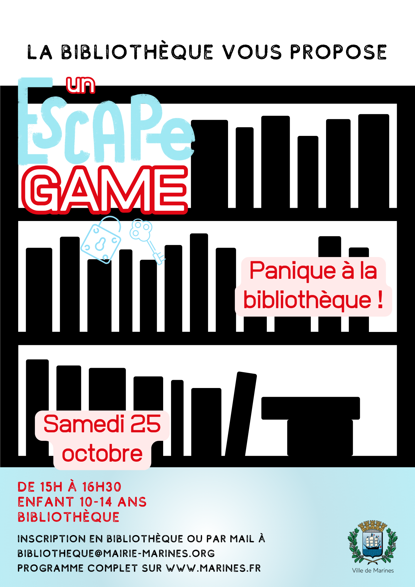 Inscription en bibliothèque ou par mail à bibliotheque@mairie-marines.org