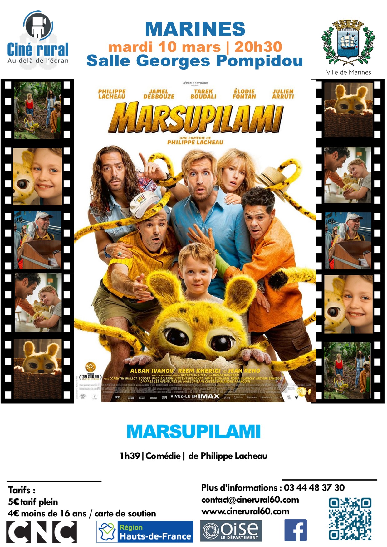 La commune de Marines et Ciné rural vous proposent une séance de cinéma le mardi 10 mars à 20h30 à la Salle Georges Pompidou : Marsupilami. Tarif : 5 euros (4 euros pour les moins de 16 ans).